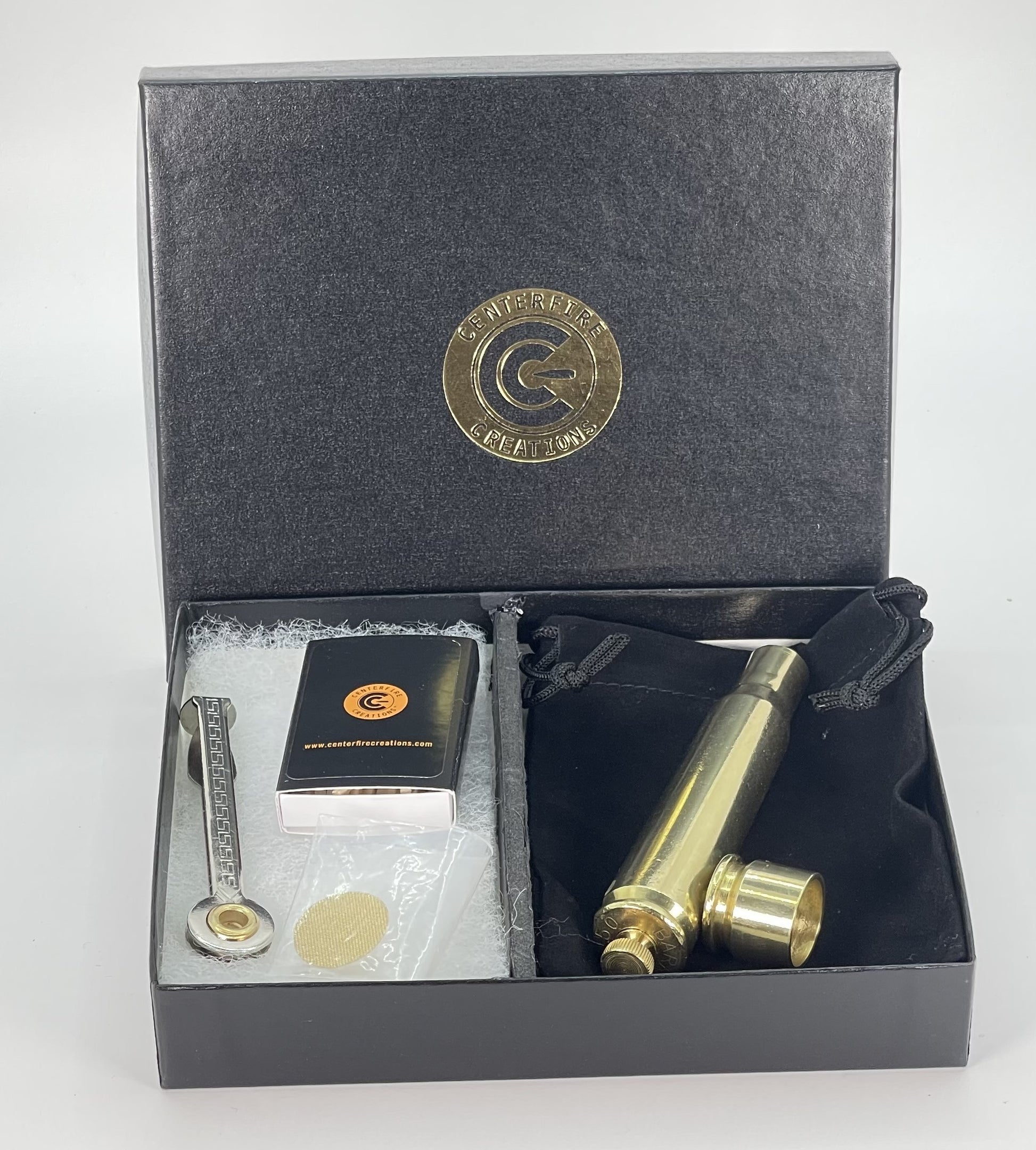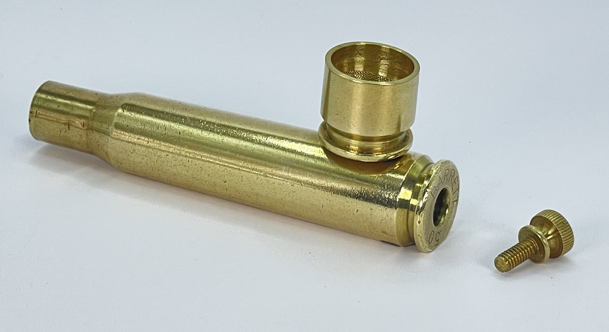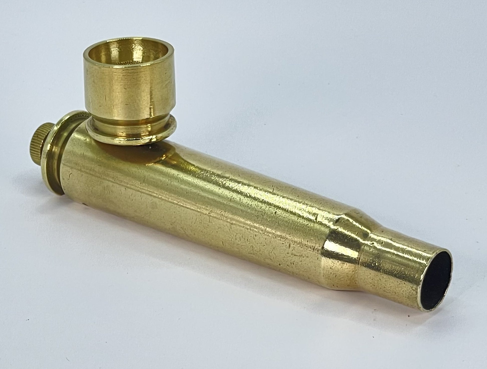 Handmade Repurposed 50 cal. BMG brass cartridge smoking pipe...even the bowl is made from a 50 cal. BMG brass cartridge.... removable air intake screw....comes in a gift box with extra screens and cleaning tools...... can be disassembled for cleaning...